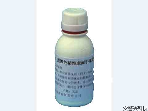 使用方法: 用灰鼠毛刷蘸取显现剂,涂抹在胶带的粘面上,用清水冲洗掉背景上的显现剂,就可以将胶粘面上的潜在指纹显现出来。